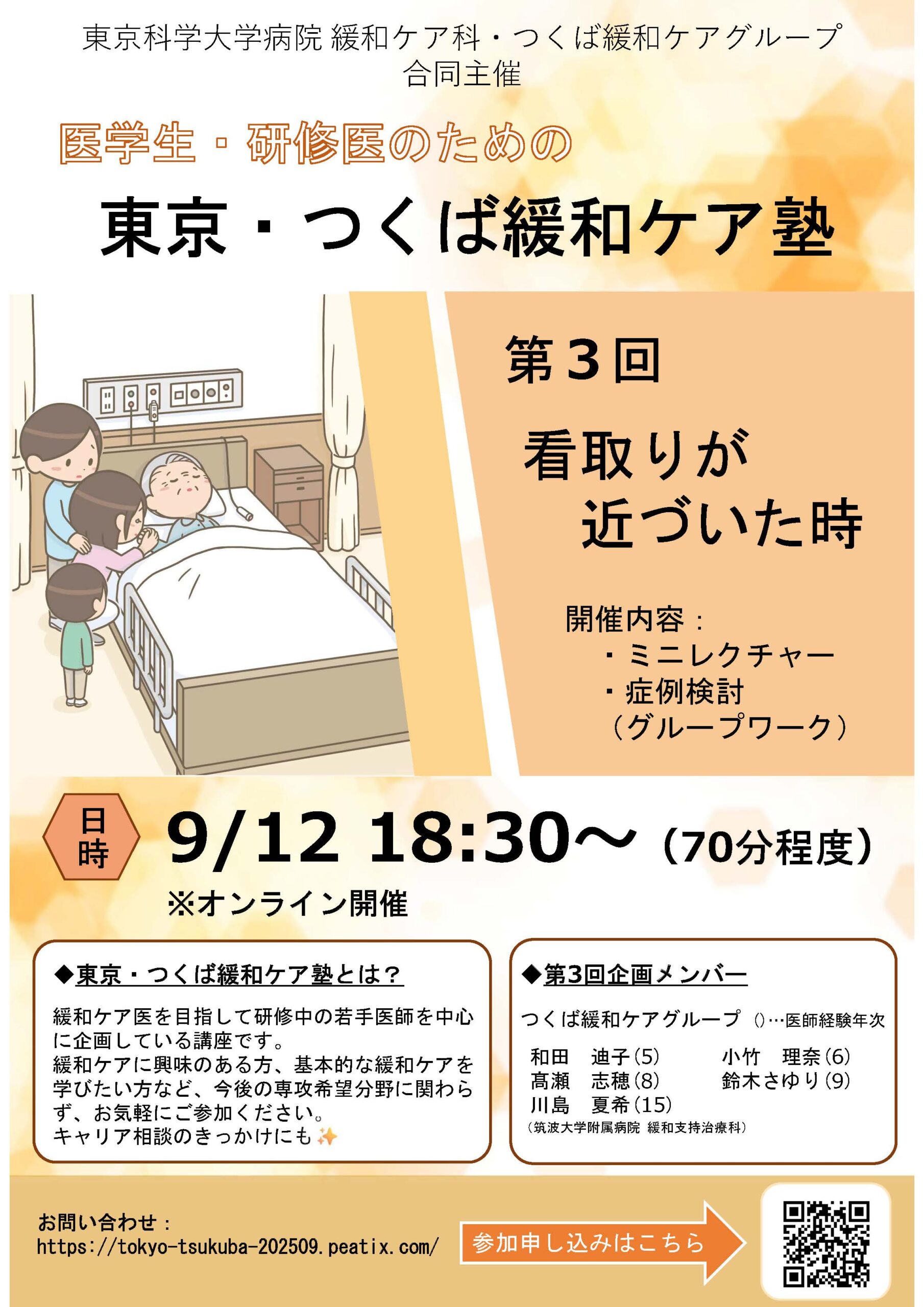 令和7年9月12日(金)に第3回東京・つくば緩和ケア塾を開催いたしました。
