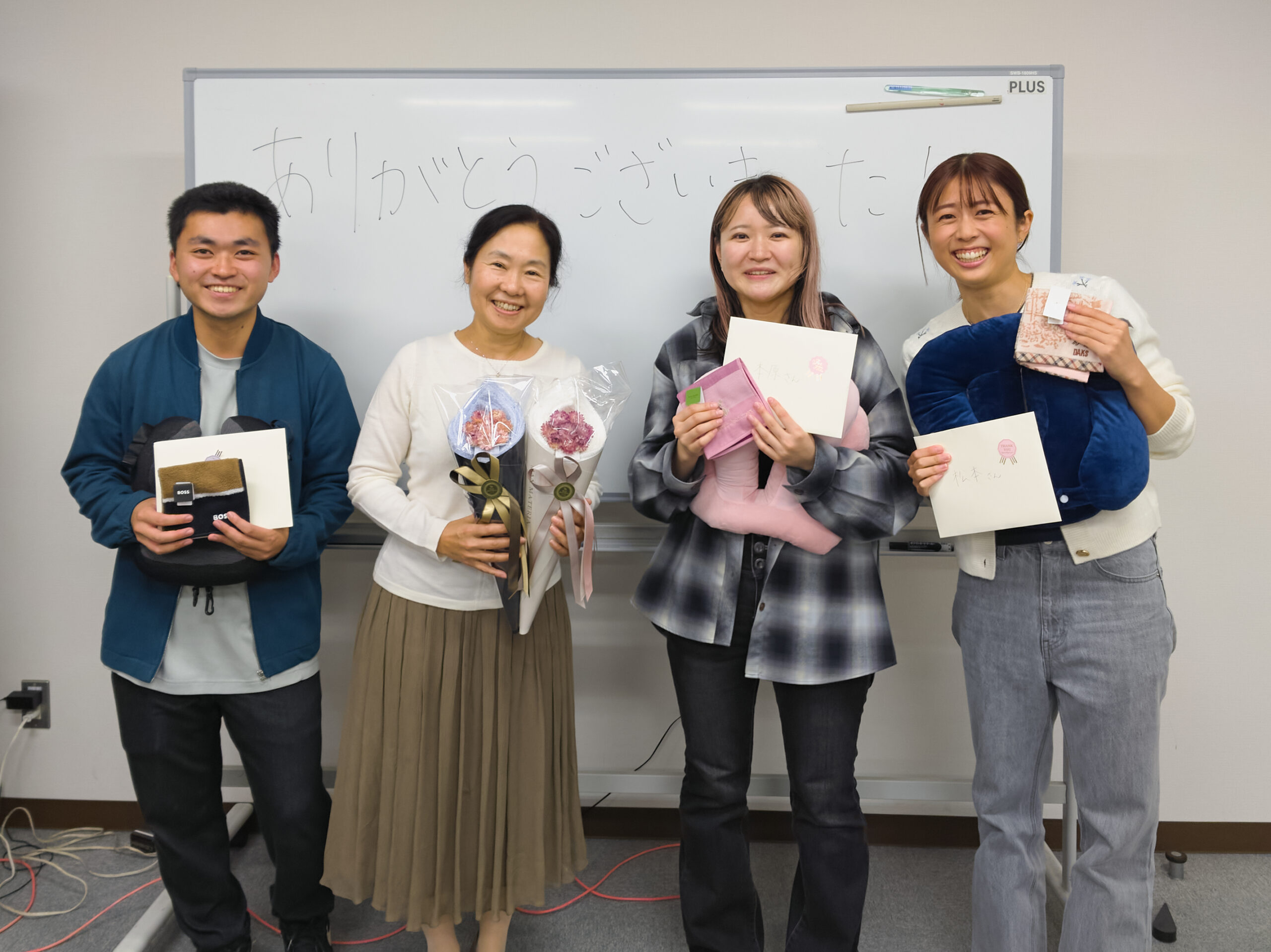 当日はプレゼント交換の後、ケーキを囲みながら和やかに歓談しました。笑いあり、涙ありの時間の中で、改めて研究室の温かさを感じるひとときとなりました。