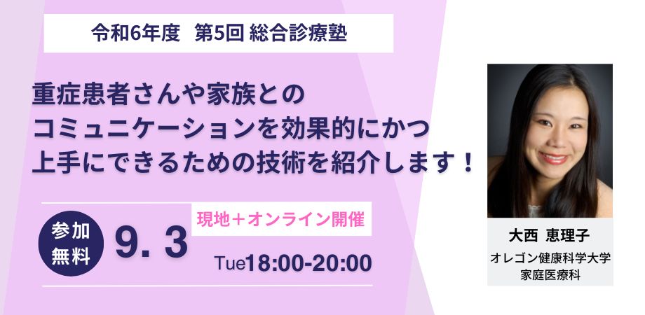 令和6年度 第5回総合診療塾(テーマ:緩和ケアにおけるコミュニケーション)を開催します。