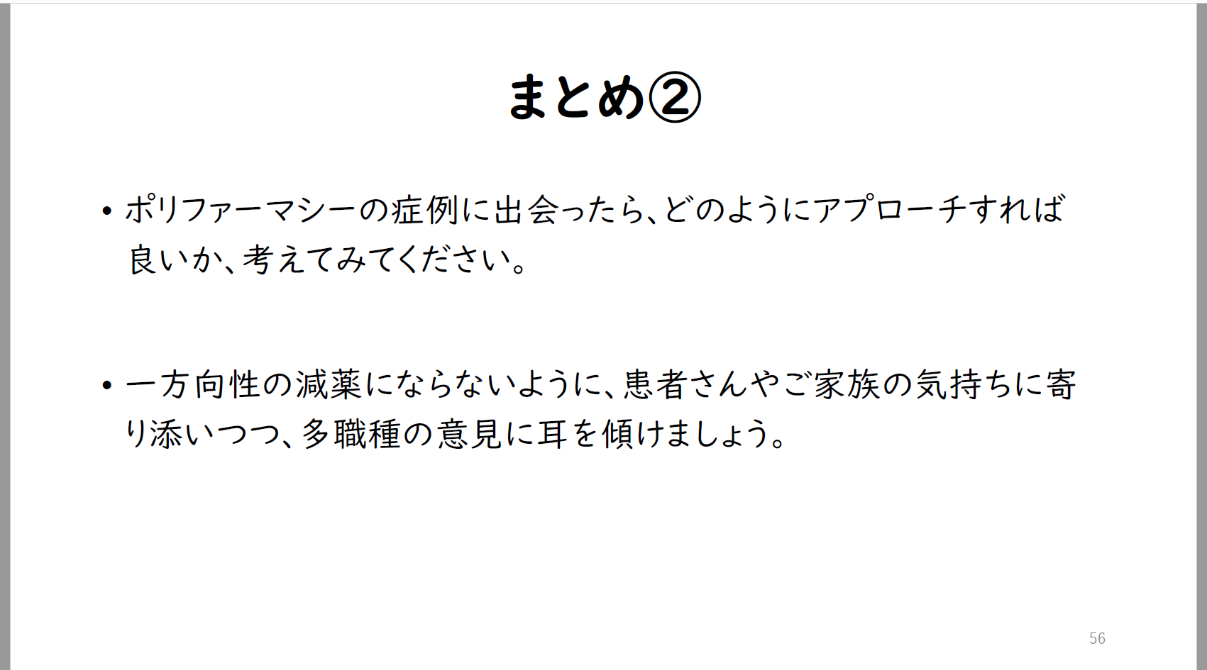 ポリファーマシーとは?を学び、考える、とても良い機会になりました。