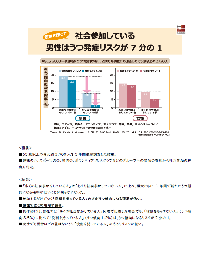 個人的には健康に向けて自分で頑張れるように個人個人の背中を押すことと頑張りやすい環境を作ることは車の両輪であるというのが印象的でした。資料にもありましたが仕事に有意義感がある方がうつ病の発症確率が1/7になる。『非喫煙、適度な飲酒、適度な運動、適度な体型である』よりも、『社会とのつながりの種類や量が多いこと。それらのつながりから受ける支援が多いこと』は、死亡率の低さに影響する。などといったことは頭のどこかで判っていたはずであったが改めて聞くとやはり普段の考え方は少し前者に傾きすぎているのではないかと考える機会になりました。