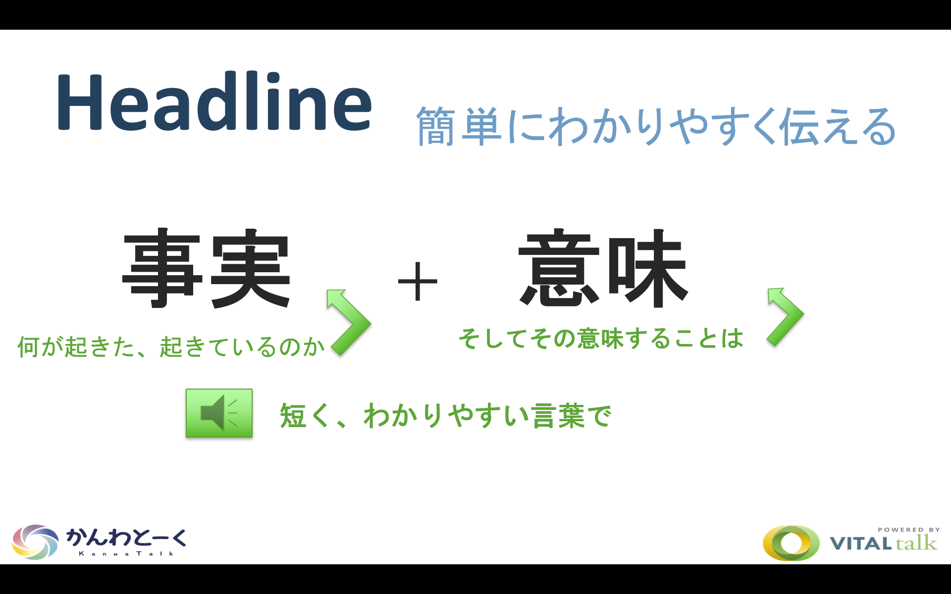 OSCEからお馴染みのSPIKESですが、ポイントを教えて頂きより意味のあるスキルになったと感じます。また、Bad news tellingの場では簡単にわかりやすく伝えることが大切で、これをHeadlineと呼んでいました。ニュースの見出しくらいの短く、わかりやすい言葉で一番伝えたいことを伝えましょうということです。事実(何が起きた、起きているのか)+意味(そしてその意味することは)を考えるとよいそうですが。これがとても難しかったです。実際に症例のHeadlineを3-4人で考えましたが、各人の経験や重要視している部分の違いが出るなと感じました。
