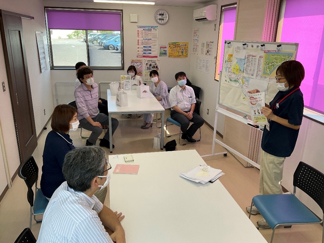 7月5日は東京医科歯科大学から山脇先生が神栖済生会病院に来られ、神栖での実習の概要について説明した後、実際に学生が実習する訪問看護、地域包括支援センター、院外薬局を視察しました。訪問看護、地域包括支援センター、院外薬局それぞれの担当者からお話がありましたが、熱心な学生が多く、意外と学生からの質問も多いという話も聞かれました。