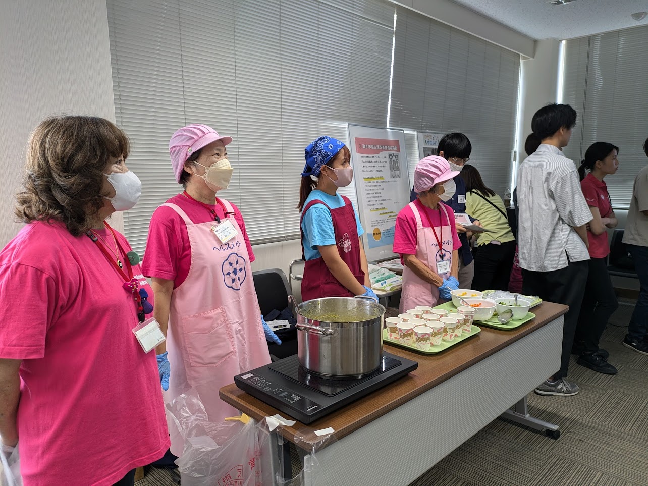 講和の会場では、ヘルスメイトさんから野菜たっぷり、減塩ポタージュの試食が配られ、お客さんは、スープを味わいながら医学生の健康講和に耳を傾けることができるという実に「美味しい」企画でした。