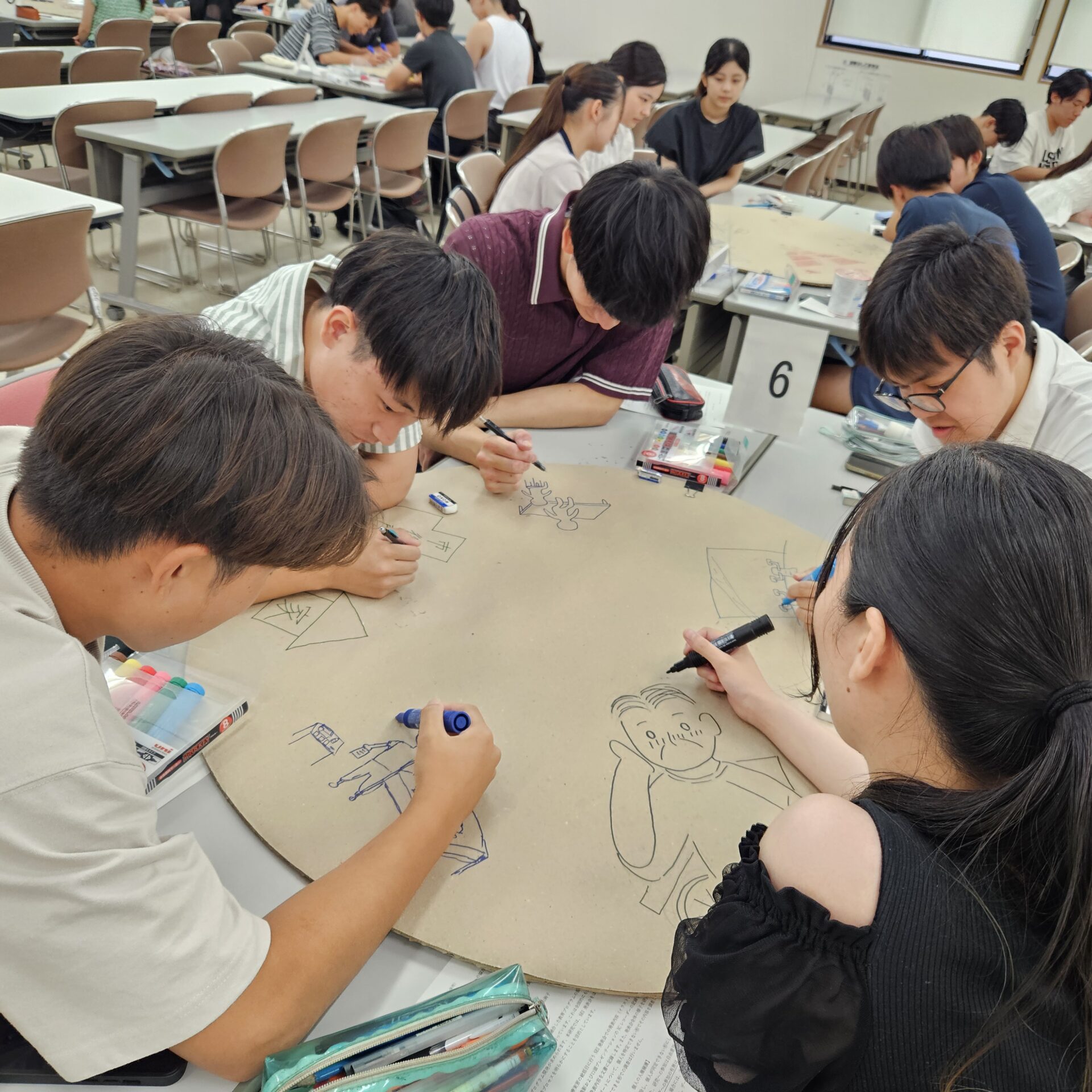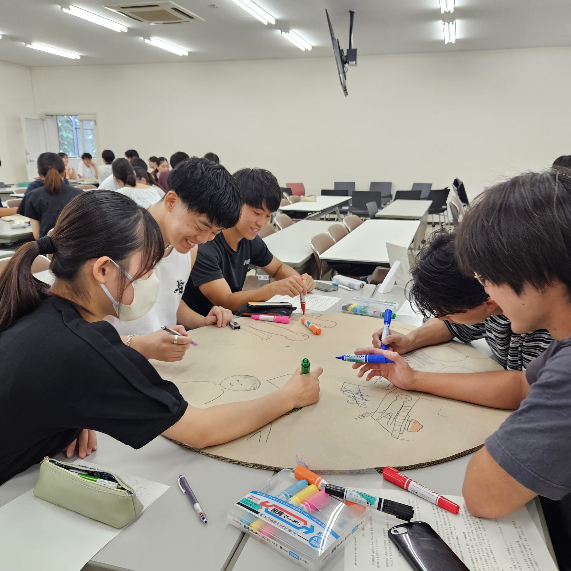 今年度から新たな取り組みとして、実習後の振り返りとして、グループでSignificant Event Illustration(SEI)を行うプログラムを開始しました。SEIは5年次の地域医療実習の最終日にも行っているもので、学生が「実習の学びにつながった最も印象に残った出来事」について、その場面をイラストで表現してグループ間で発表するものです。