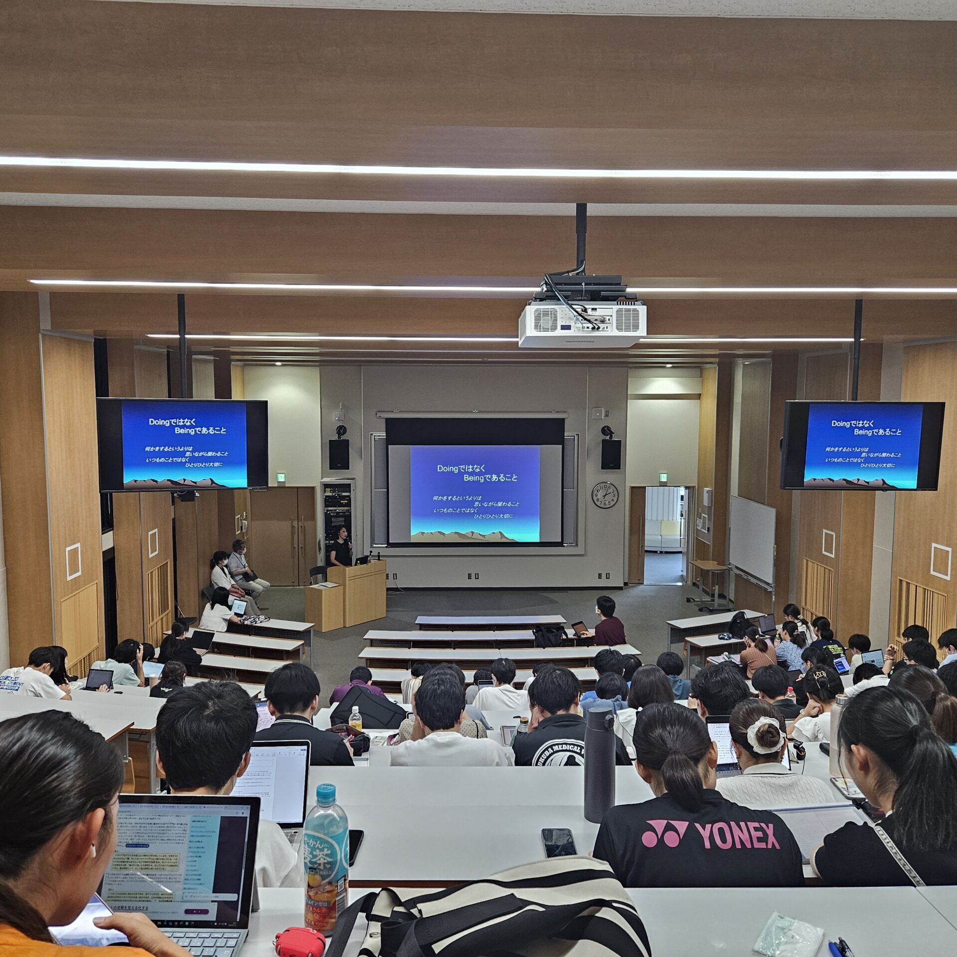 病と向き合う姿、ご家族の支え、穏やかな旅立ちの瞬間が映し出され、学生一人ひとりが「看取り」について深く考え、感じる貴重な時間となりました。