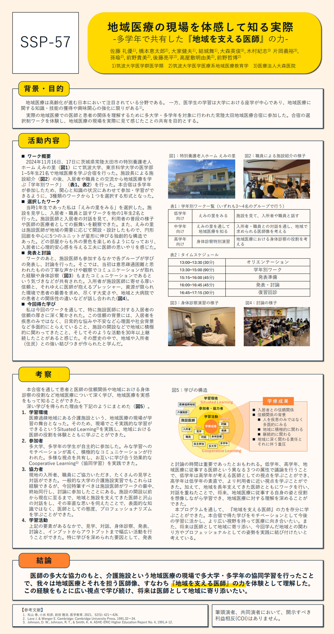 その後、当時1年生で参加した学生がこの学びを第16回日本プライマリ・ケア連合学会学術大会で発表を行いました。