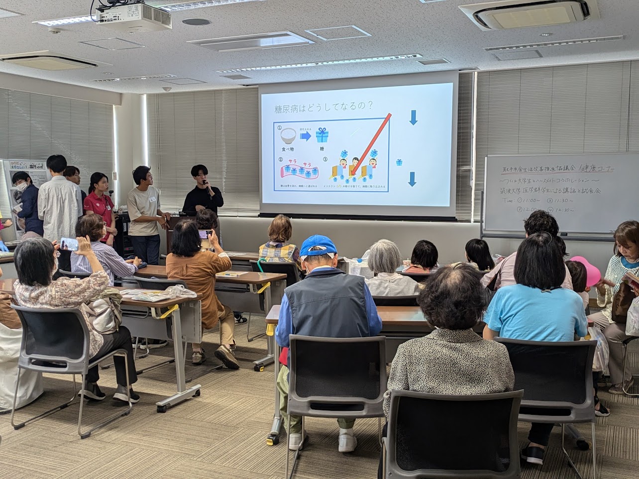 地域の健康増進のための医療者の役割を理解し、実施のために必要なスキルを修得することを目的として、学生が自ら地域の現場で健康教育を行います。複数のテーマから自分の興味のあるテーマを1つ選択して、3日間かけて地域で実施する健康教室の企画・準備を行った後、実際に地域の現場で健康教室を実施しています。
